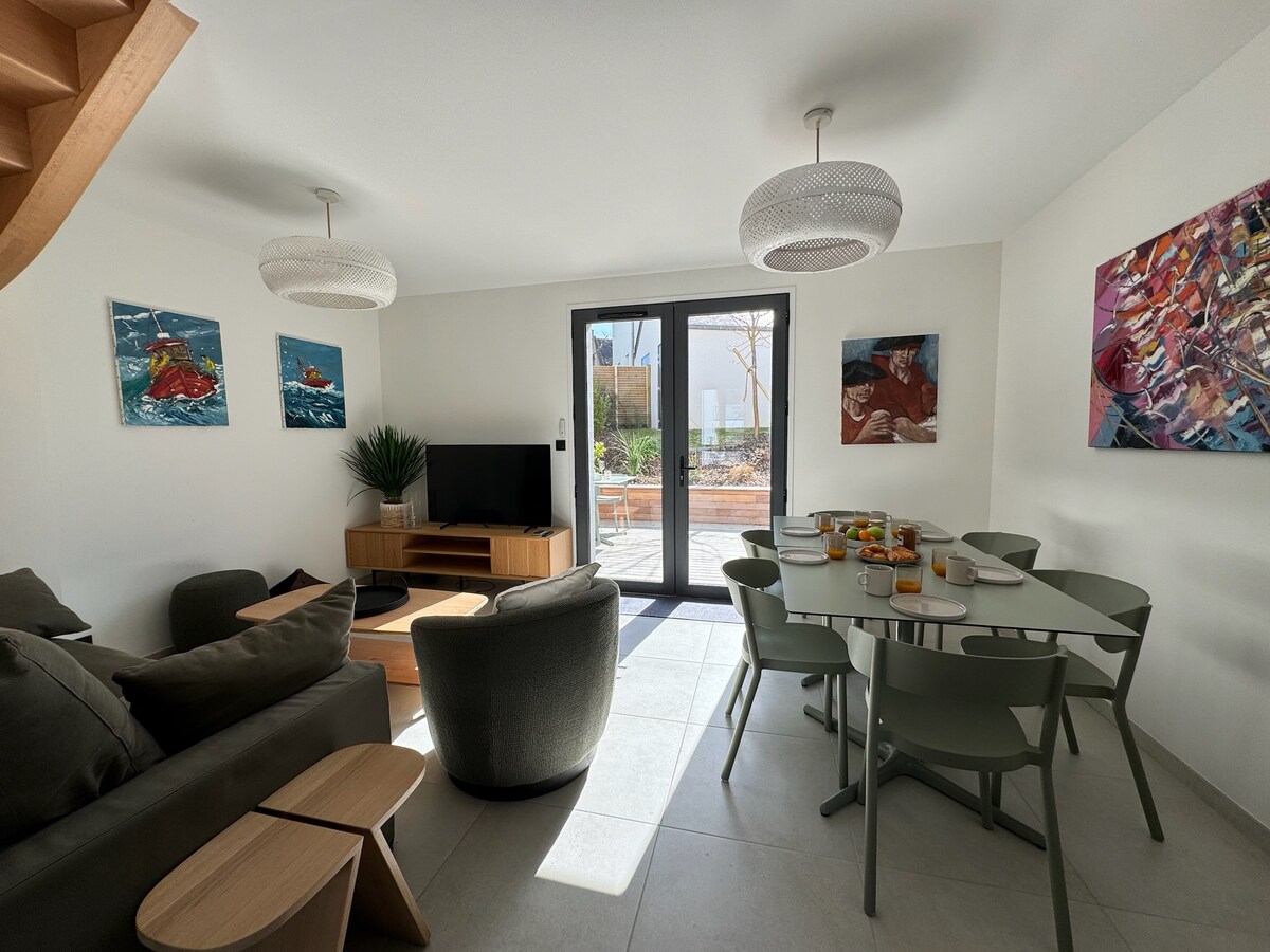 Welcome to Kerguillé, a fully equipped house with a pool! Come and enjoy a pleasant vacation with family or friends in this fabulous house with a heated pool and garden. Just a 5-minute walk from the port of La Trinité sur Mer, you will appreciate its spacious, light-filled living room opening onto the terrace, its fully equipped kitchen, and its 4 tastefully decorated bedrooms.