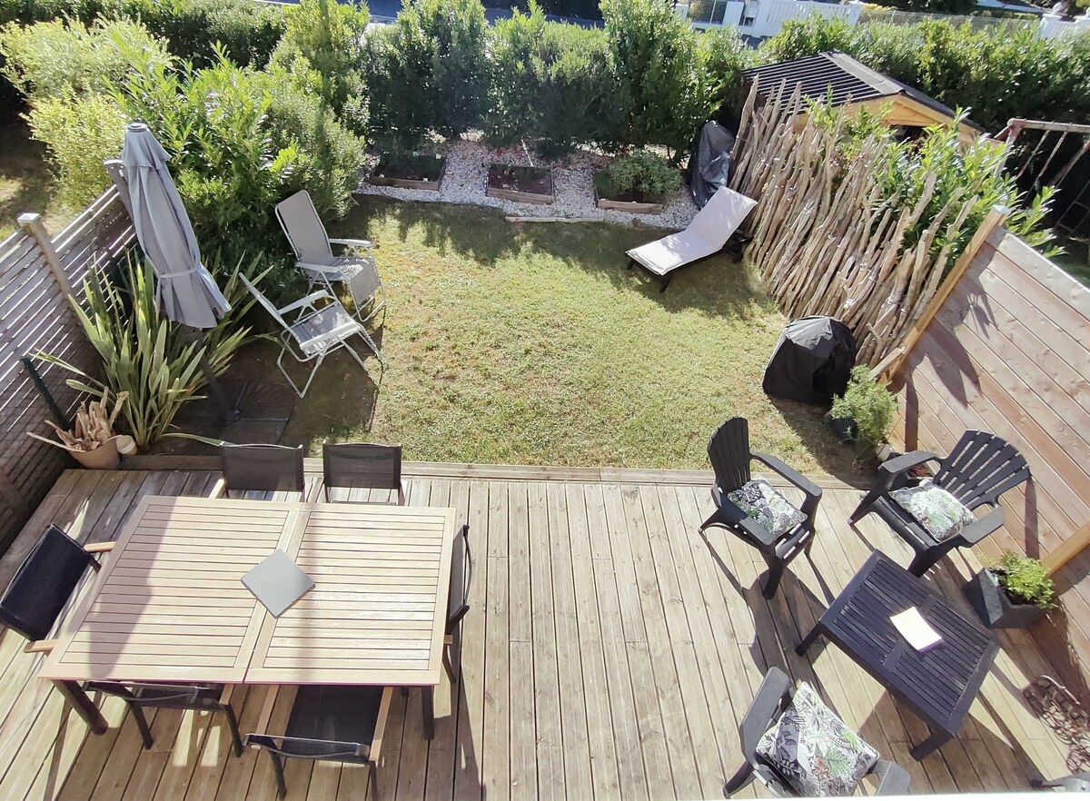 Charming and pleasant house completely renovated, very bright and wooded, can accommodate up to 8 people thanks to its 3 bedrooms. Fully equipped and comfortable for families: jacuzzi, ping pong, outdoor games and indoor play area for children! The house is fully fenced and secure.