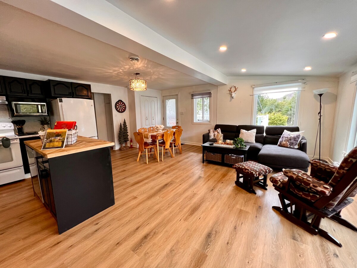 Located between the mountains and the Burton River, in the heart of the natural environment, the Chalet Refuge et Nature offers its visitors an experience of peace and tranquility. The chalet is freshly renovated and furnished with a cozy style, both comfortable and warm. The charm of the wood fireplace in the living room is a key part of the well-being you find there. All the essentials to enjoy a great stay is already on site. No. CITQ: 298734