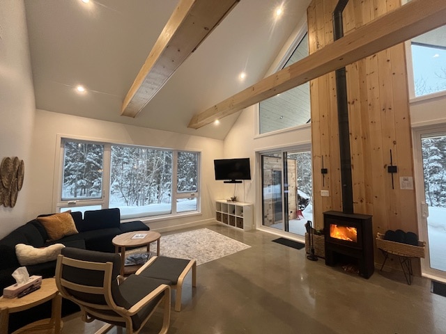 Welcome to La Khabine! This cozy, modern cabin comes with all you need to relax and connect with nature. Enjoy a glass of wine with the sound of a crackling fire in the wood burning fireplace. Take in the view of the forest through the surrounding floor to ceiling windows. Relax in the private outdoor cedar barrel sauna. Natural self-care products, firewood, laundry soap, and high-speed Wi-Fi are all complimentary. We hope you'll love our little cabin of windows as much as we do :)