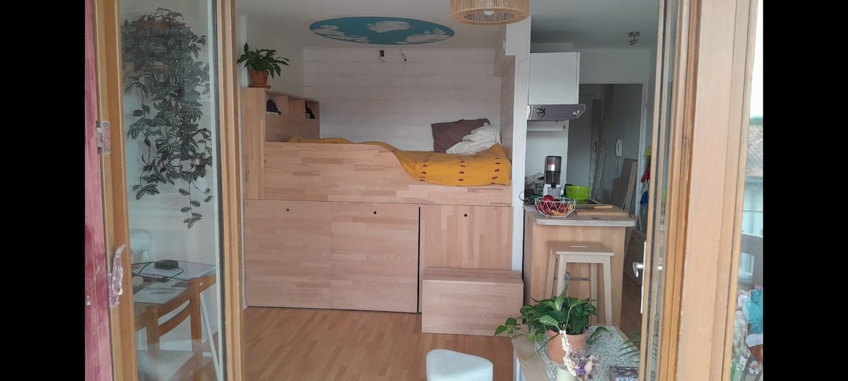 A stone's throw from the legendary Basque coast, everything is within walking distance: beaches, city center, casino, restaurants, bars, shops... Completely renovated, this bright mini-loft is fully equipped (kitchen, shower room, washing machine) and tastefully furnished (sofa, double bed on a mezzanine, flat screen). A south-facing terrace completes the package.