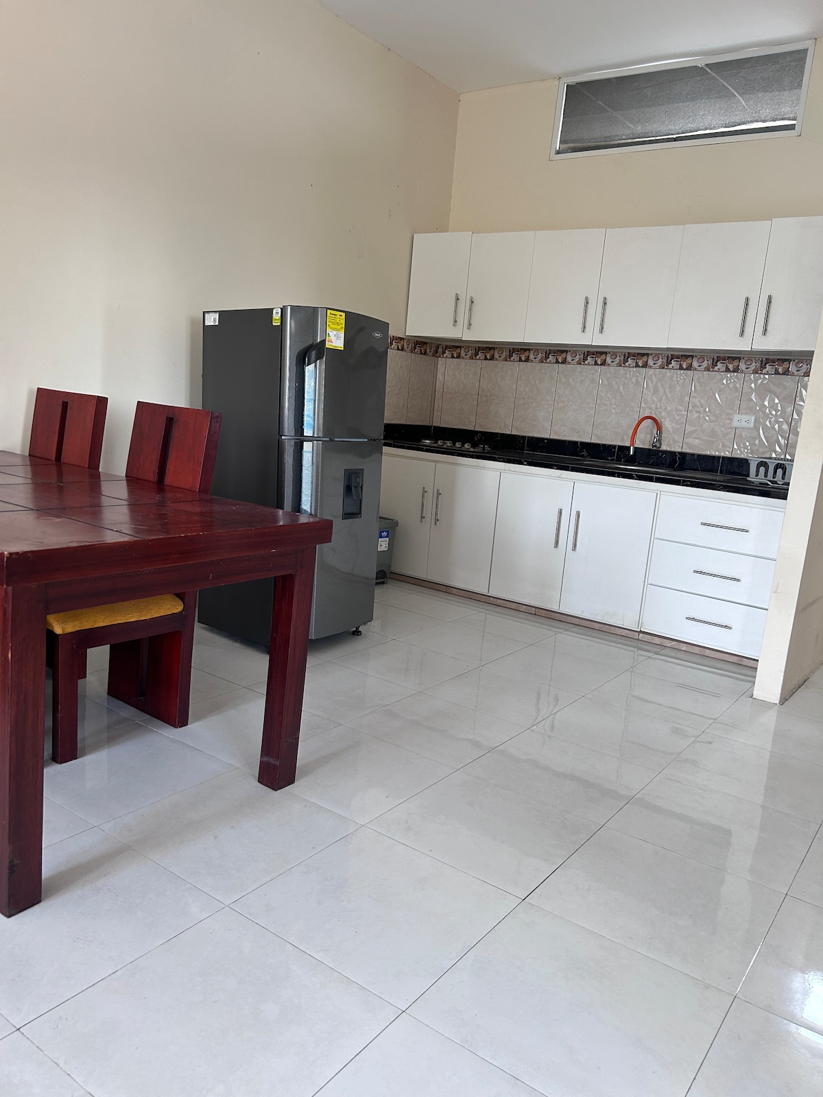 Ideal para parejas, familias o viajeros que buscan comodidad y privacidad. Este departamento moderno y acogedor ofrece un dormitorio principal con cama queen y baño privado, clóset, escritorio y TV. Además dispone de un segundo ambiente con cama doble y sofá, perfecto para grupos pequeños o parejas que desean un espacio amplio sin sentirse abrumadas. La cocina está totalmente equipada y dispone de Aire acondicionado, Wi-Fi, hamaca interior y garaje. Ubicado cerca del Hospital Marco Vinicio Iza.