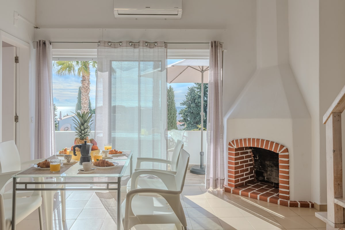 Sea view, pool, beach, AC, parking in the Algarve