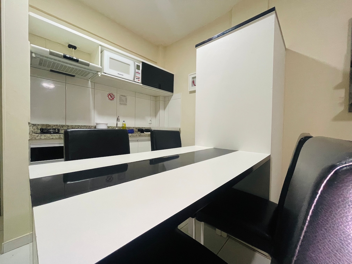 1-BEDROOM APARTMENT, LIVING ROOM WITH INTEGRATED KITCHEN, 1 BATHROOM AND BALCONY WITH PANORAMIC VIEW OF THE LEISURE AREA, 6TH FLOOR. -Located 5 minutes from gas stations, bakery, supermarkets, restaurants, pizzeria and meat shop. -Located 10 min from 2 wholesalers -Located 15 min from Downtown. -Located 200 meters from Lagoa Quente Water Park. Tickets can be purchased at a discount at the condominium reception. Your family will have a great stay!!!