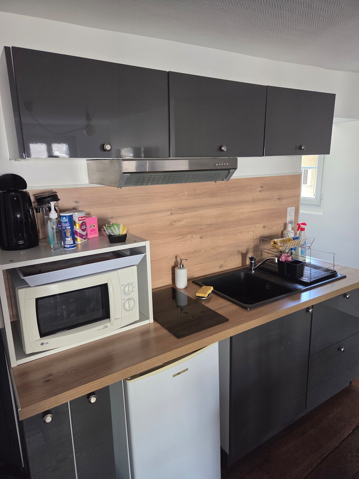 Relax in this quiet and elegant studio with modern and natural decor. The studio is equipped with a kitchen (Senseo), a bathroom and a bedroom with double bed + sofa bed You'll have the opportunity to relax on the terrace with chairs and table as well as bask in a heated pool equipped with sun loungers and spa The studio has a separate entrance with key and a French window adjoining the terrace (listing on Leboncoin)