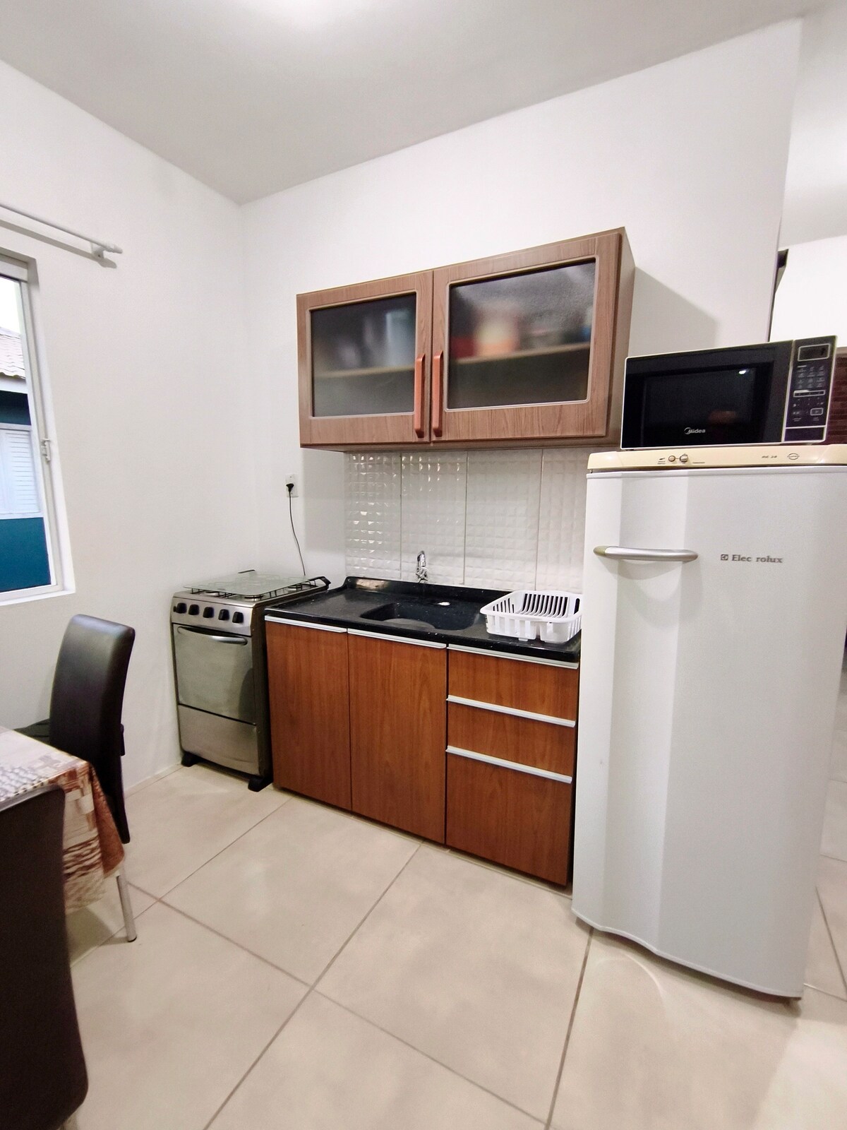 I rent a property individually on the south beach of Itapirubá, consisting of a single-story house and on the upper floor two independent apartments, rented individually. Apt. 2 bedrooms, in total 2 double beds and one single bed, 1 bathroom, living room-kitchen, balcony with barbecue grill.