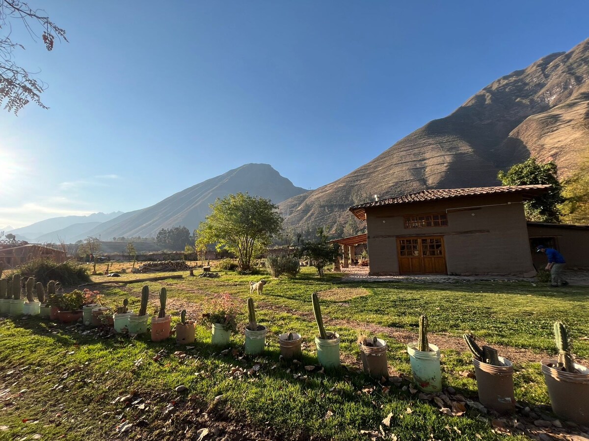 The best view of the entire Sacred Valley towards the Andean glaciers! If you want peace, tranquility and rest away from the hustle and bustle of the Sacred Valley but at the same time be able to visit all the attractions of the area, this house is your paradise. Our house is 100% ecological, very well located just minutes from Maras and Urubamba and in a very quiet place to enjoy nature. The house collects rainwater and is naturally heated. It is naturally built.