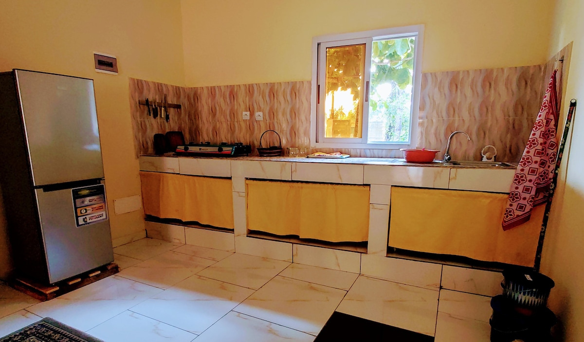 Our property is located north of the fishing village of Mondoukou about 500 m from the beach and is a mixture of small farm and tropical garden with several residential and commercial buildings, free-range chickens, private vegetable garden, coconut trees, mango, almond, cashew trees, passion fruit… depending on the season for harvesting at the front door.