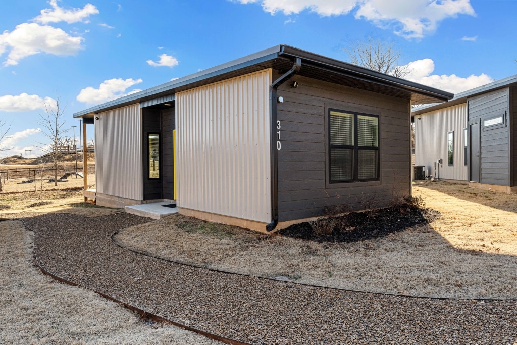 Oz Landing - DT Rogers Lower Level Studio is a NEW construction Carriage House built in late 2021 with a PRIVATE ENTRANCE and dedicated parking. The inside has 1 queen bed with a pull out sofa, TV with streaming to your favorite aps, secured bike storage with SARIS racks, hot and cold bike wash, fire pit, patio with seating, and only 2.8 miles to Beaver Lake, walking distance to DT Rogers, only minutes to Bentonville, and the U of A! ASK about E-BIKE RENTAL AVAILABLE!