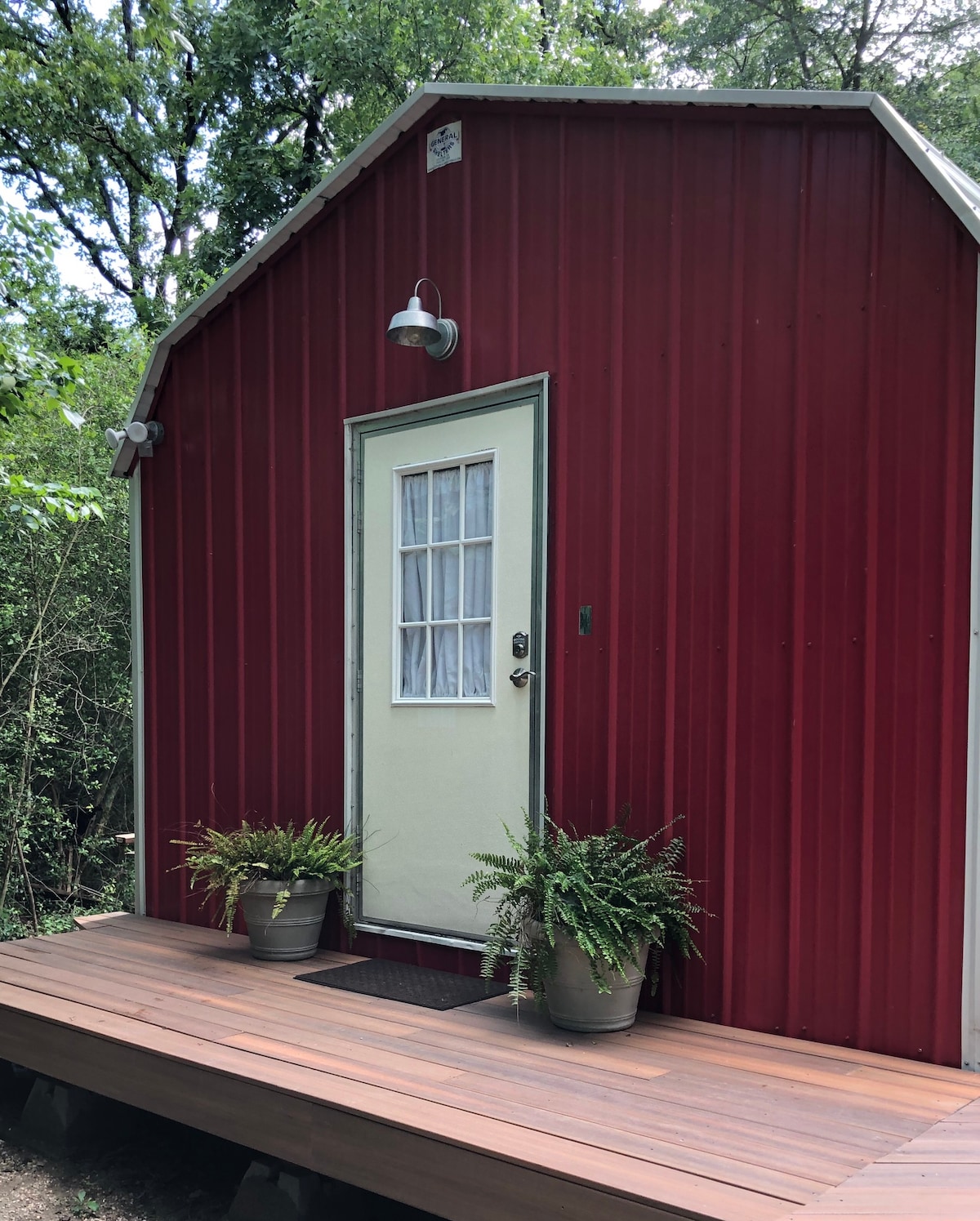 On a private 14-acre countryside retreat, this tiny home provides an unforgettable lodging experience. Our innovative Cargo home is outfitted with premier amenities including a 14β queen mattress with luxury linens, Smart TV, private front porch area, convenient parking, free WIFI, fully stocked kitchenette, Keurig coffee maker, and so much more! The best part of this unit is our rooftop deck where you can enjoy a romantic dinner, stargazing, or sip on a morning cup of coffee.