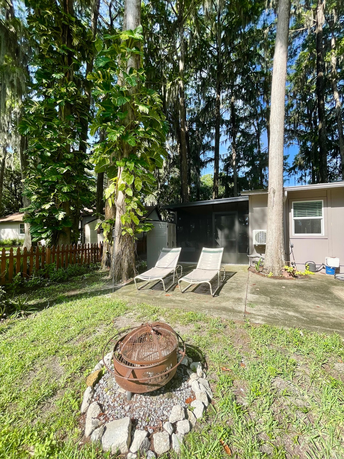 Fresh air and back to nature. Imagine a tiny but comfortable hotel room in a rural setting. You'll hear roosters crow as the sun rises. Take a walk on a moonless cloudless night, and you may see stars. This 190 sq. ft. tiny house is a ten minute drive to either Rock Springs or Wekiva Springs, a four minute bike ride to the West Orange Trail which runs for 22 miles, and a 15 minute drive to the Lake Apopka Wildlife Drive. The major theme parks are a 30 to 45 minute drive, depending on traffic.