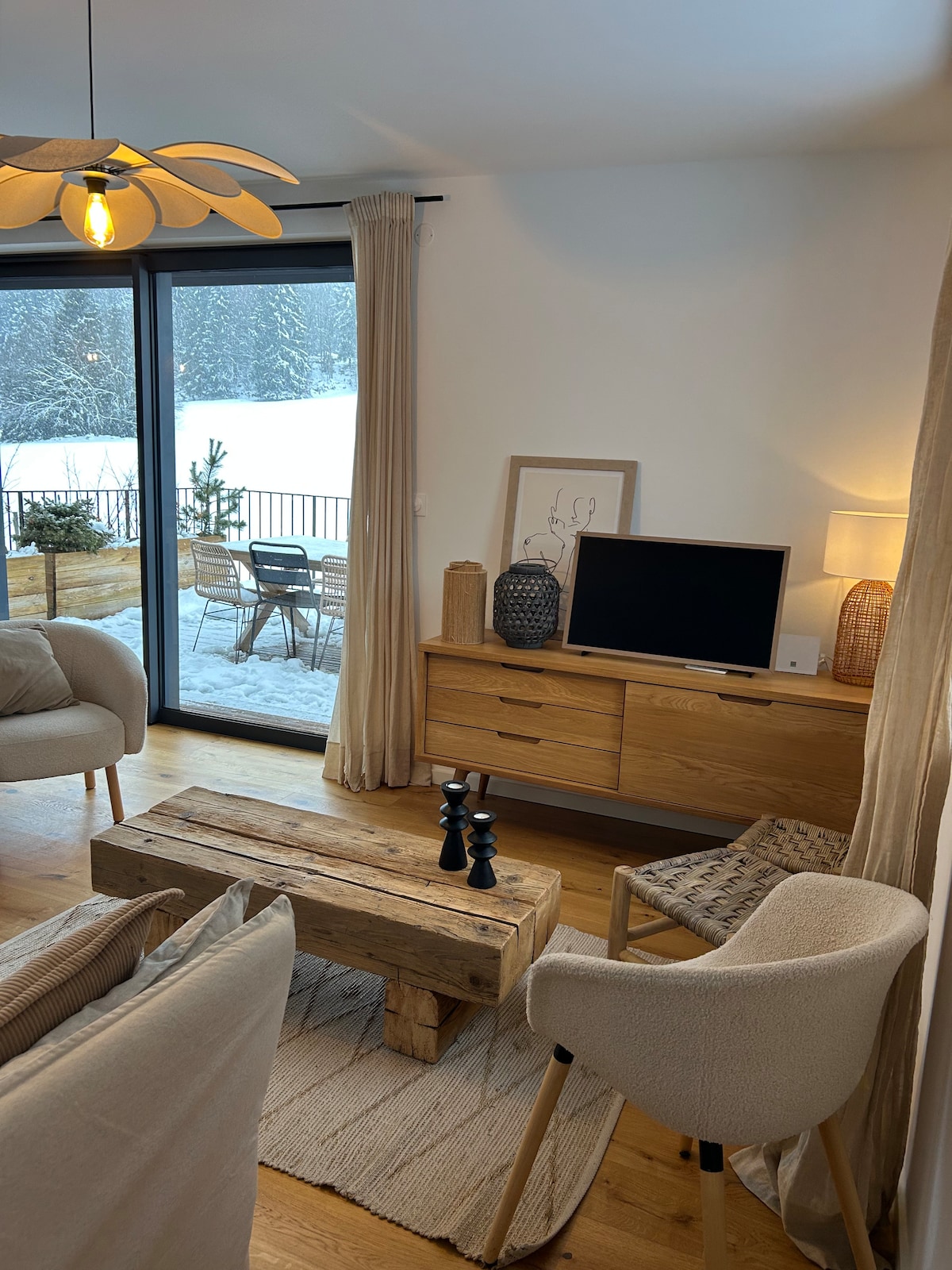 The Chalet Le Fornay, offers 2 apartments for 4/5 and 6 people, great comfort, with a well-kept design. It is located in the village of Les Granges in Morzine, 1400 m from the city center, city bus stop 70 m. Each apartment has a large living room with fireplace and panoramic view, a double master bedroom, bathroom en suite and a family room, double or quadruple, bathroom en suite as well. We provide concierge service, linen service and cleaning service.