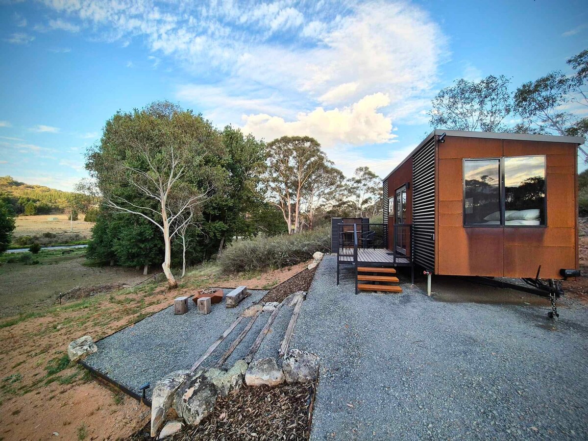 Relax and absorb the tranquillity of this quiet and romantic spot in nature. Wake up to the sounds of the birds, wildlife and the subtle echoes of the Snowy River passing by. Our Tiny Home was built using recycled and handmade rustic features. Unplug from life here. Sustainability is important to us, our guest amenities are either locally sourced or bio degradable. Just a few minutes drive from Dalgety and 30mins to Jindabyne / Berridale. Final 6kms is accessed by a dirt road.
