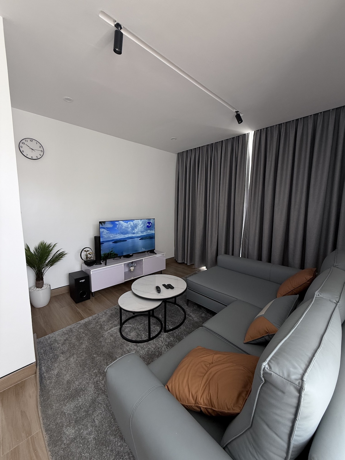 Discover your dream escape in a new tranquil 2 bedrooms, Located in the prime residential area of Kigali (Nyarutarama Golf course), 15minutes from the airport, in a convenient neighborhood, 6 minutes drive to Kigali Convention Center, 5 minutes walking distance to Brioche Café, (Woodlands,simba) Supermarkets, CaliFitness gym, 3minutes drive to MTN Center, 6 Min to Kigali Heights,A 58 inch smart TV,cable Tv ,Netflix, DSTV,fast internet. It is located on a Tarmac road