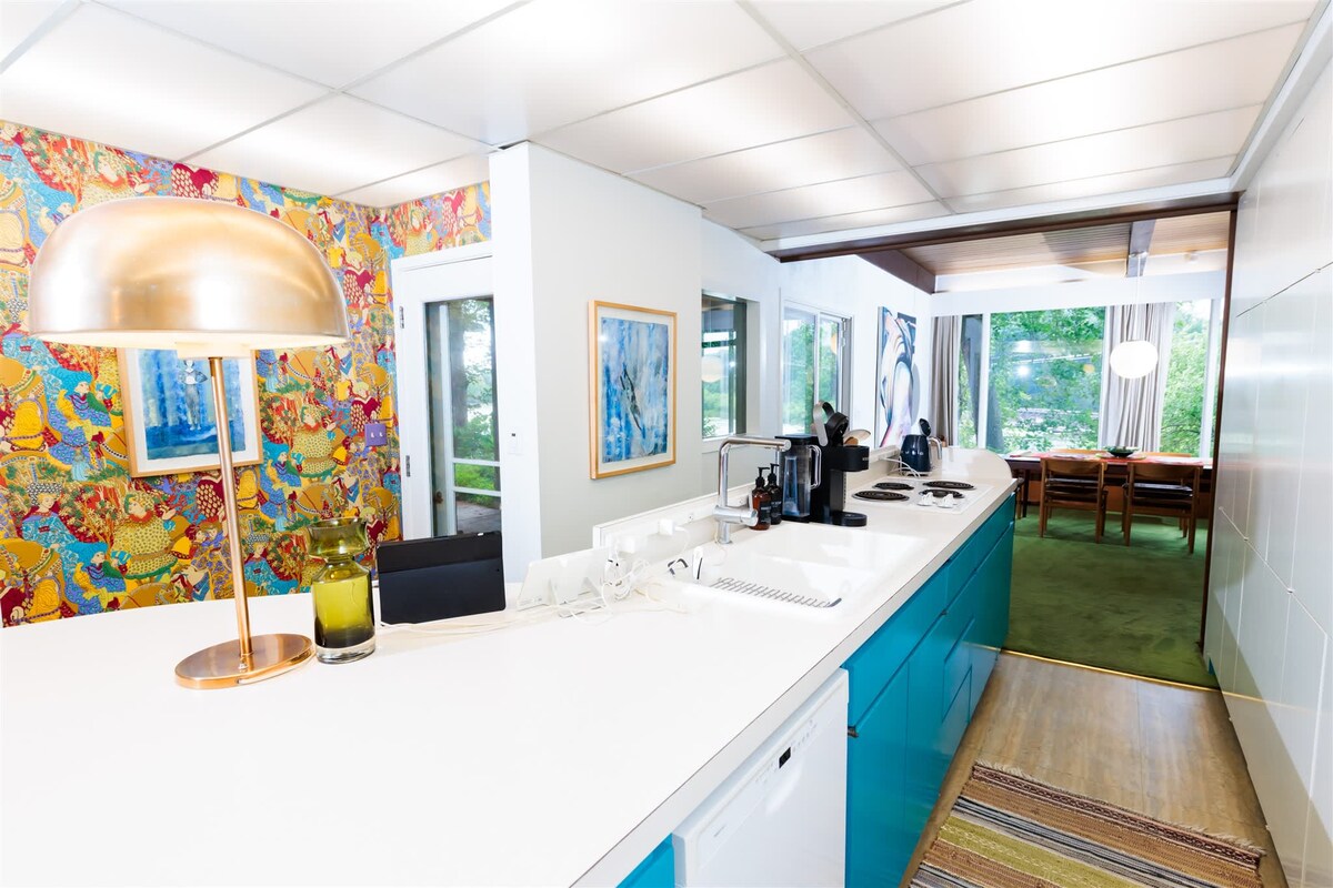 Urban Zen retreat; unique mid-century modern meets Japan in a great neighborhood full of architectural gems. Updated 1950's architect-built passive-solar artist retreat home, surrounded by trees and Japanese Gardens. Casual comfort far from sterile, filled with art. Complete tranquility 10 min from downtown Mpls and very close to both U of MN campus. Lively, friendly neighborhood in walking distance to grocery store, gift shops, wine shop, yoga studio, coffee shops and great restaurants.