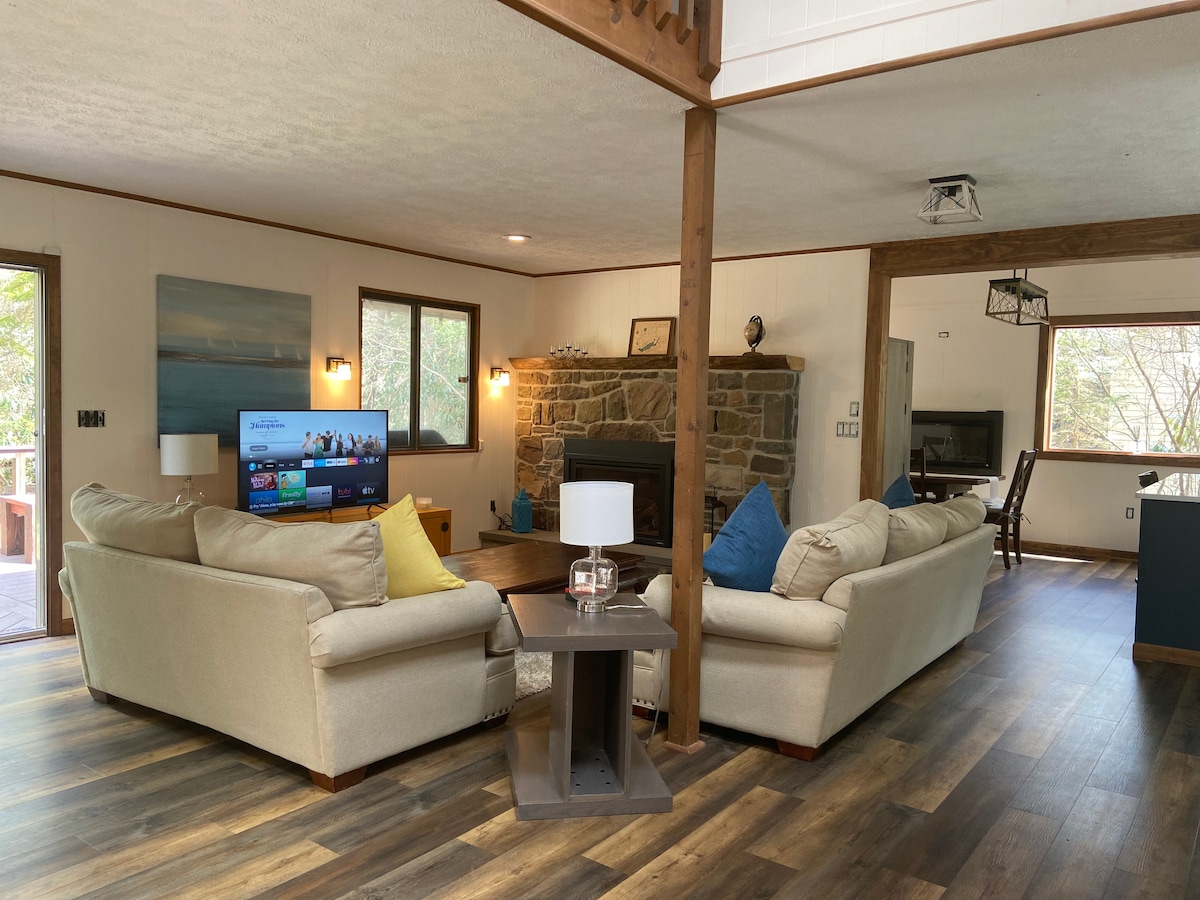 The Woodland Cottage is a modern, family-friendly vacation rental in the platinum club community of Lake Naomi, in the Poconos Mountains. This 3-bedroom, 2-bathroom cottage features a comfortable living area stocked with games, puzzles and books for kids of all ages. Relax in the wooded yard with deck, grill, and fire pit. Enjoy the comfort of new HVAC system, with individual units in living area & each bedroom. Bathroom linens and bedding provided.