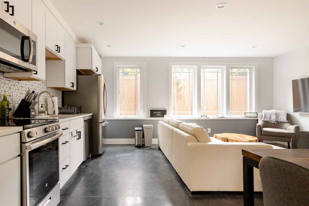 Built in 2021, this 1 bedroom (2 beds) light-filled home is in the heart of Seattle's vibrant Fremont neighborhood and is a perfect getaway for solo travelers, couples, or business travelers seeking comfort and convenience. Located in a quiet neighborhood, it's close to Woodland Park Zoo, Sunday Ballard Farmer's Market, Wallingford, and an easy drive to Downtown Seattle. Complete with Smart TVs, a fully equipped kitchen, washer/dryer, large shower with seat, and heated bathroom floors.