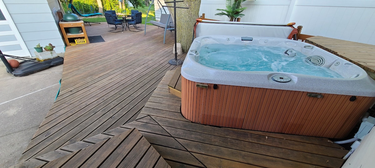 🏡 Relaxing Getaway is my private home located in Fond du Lac and I hope you are able to enjoy it during your visit. The home comfortably sleeps eight adults on four queen beds and features a chef's kitchen with all new KitchenAid appliances. The Primary Ensuite features a jacuzzi, the deck features comfortable furniture and new Weber gas grill to chill after a long day. Take a break in the media room with fresh popcorn or relax in the comfort of any bedroom, there are 6 new Samsung TVs.