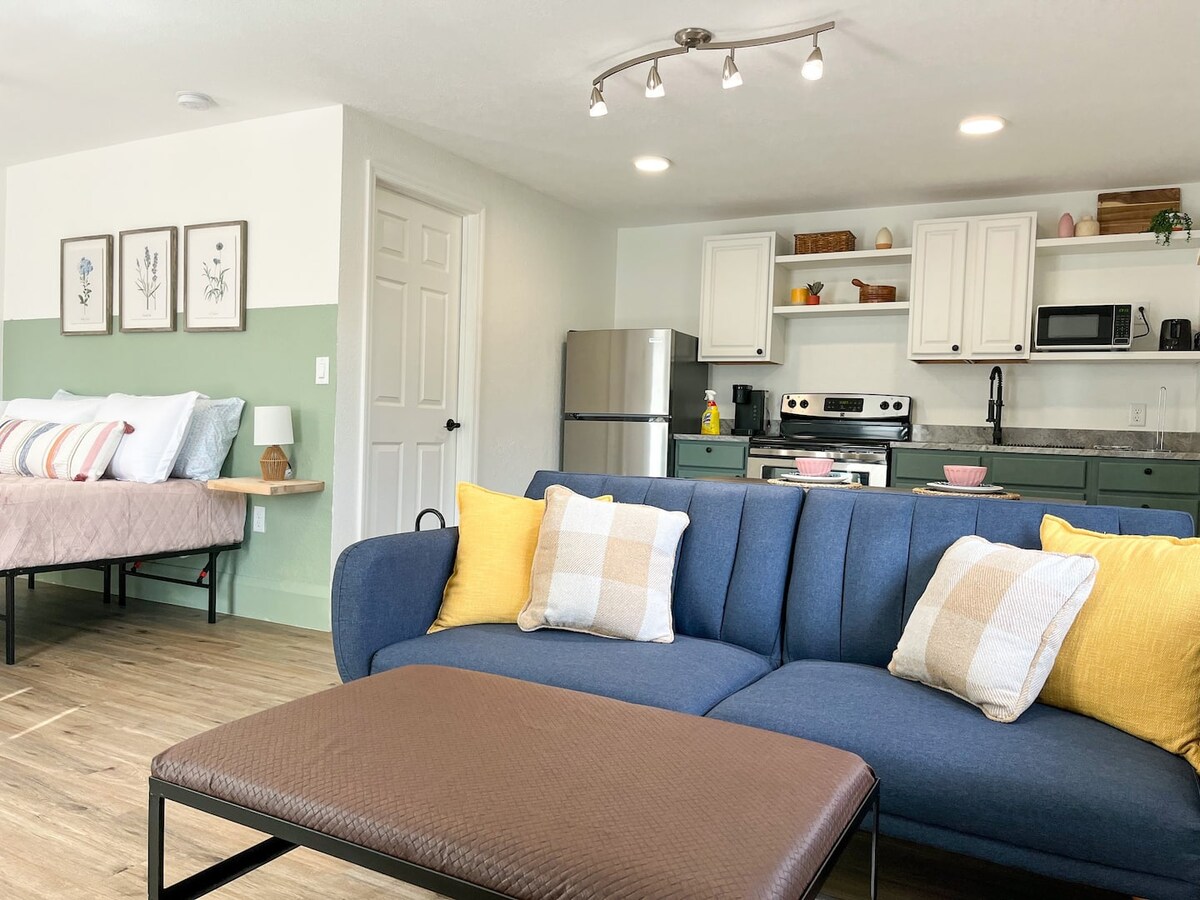 A lovely space to unwind and relax after a busy day whether it is work or play. Awake refreshed and ready for a day exploring Lakeland and highly desired surrounding cities via this clean, sunny studio with full kitchen, bathroom, and washer/dryer. Head out and wander through the nearby farmers’ market every Saturday in downtown Lakeland and pick up local ingredients to later craft a meal in the fully stocked kitchen. 1.2 miles from Florida Southern!! 2.9 miles from SEU. (Queen Bed)
