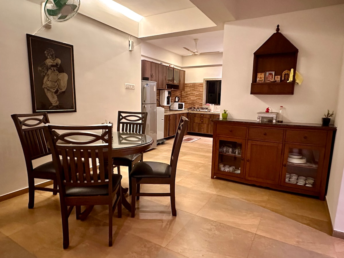 The property is located right opposite the Sasihitlu beach which is directly visible from the spacious living room and balcony . Forget your worries in this spacious and serene space as you relax with the calming sounds of nature. Mukka junction is just 3 kms away. Transport is easily accessible. The pent house is located on the 3 rd floor and accessible by lift (due to the coastal area functionality of this may get affected sometimes). Home cooked food can be made available and delivery apps
