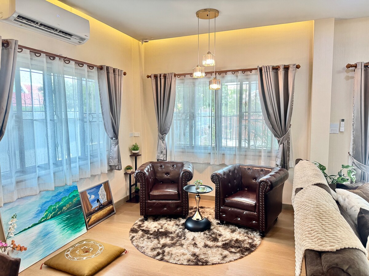 Spacious Family Retreat in Hang Dong 🏡 Escape to our Guest-Fav 4-Bedroom Home in a secure gated community. Perfect for large families or groups! Highlights: ✅ 4 Large Bedrooms / 3 Bathrooms ✅ Access to Pool, Gym & EV Charger ⚡ ✅ Full Kitchen + Dining Area ✅ 5 mins to Kad Farang / 15 mins to Airport Enjoy privacy, comfort, and plenty of space. Book your family getaway now! ✈️