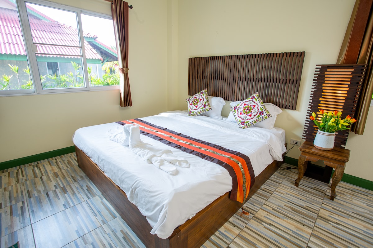 Thai house bungalows, resort style, not far from the community. A warm environment similar to being at home. Owner-operated, served with American style breakfast. 4 units only. 1 bedroom, 1 bathroom and a terrace. Common areas are available. Air conditioned room, water heater, refrigerator, TV, WI-FI. Located 800 meters from 40 minute from Airport. Approximately 3 km from 7-eleven. For over 3 days stay, Airport shuttle service free. Local tour services. (Additional charge.)