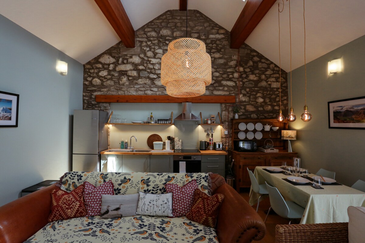 A romantic, stylish and cosy cottage for two in the beautiful Lake District National Park, half a mile from the shores of Lake Windermere and a 20 minute drive from Junction 36 of the M6. We are dog friendly. Our 250 year old cottage features modern rustic decor, u/f heating, log burner, super-fast internet, Smart TV, Sonos sound system and a complimentary podPoint 7kw EV charger. There are many wonderful walks and bike rides available from the front door. Stays start Mondays or Fridays.