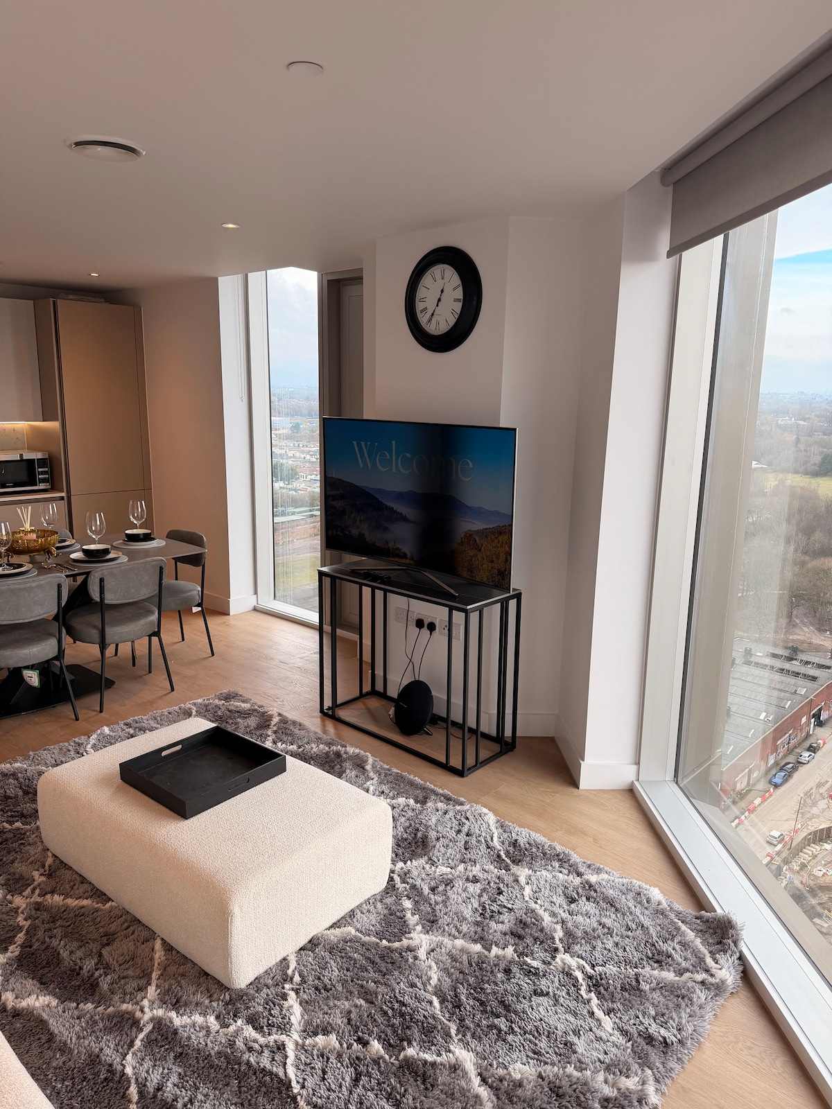 Welcome to our stylish, vivacious two-bedroom apartment with a breathtaking view of Manchester's north. The interior of the apartment has been tastefully decorated, featuring modern furnishings and all the conveniences needed for up to 4 visitors to have an opulent and comfortable stay in Media City. This house is the ideal retreat. We will ensure your stay is as pleasant as possible whether you are working away from home or staying for a weekend.