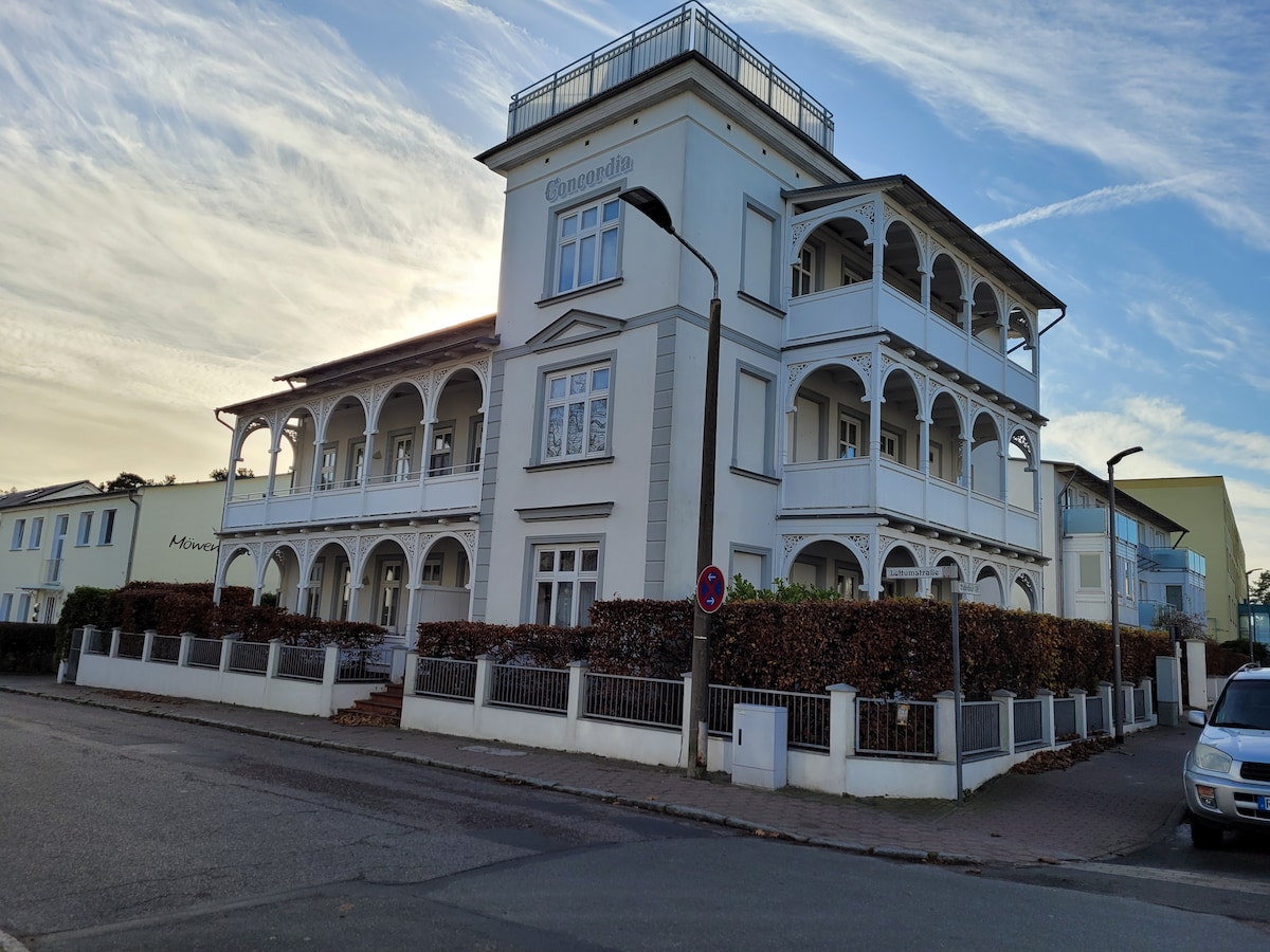 Genieße die wunderschöne Ostsee mit unserer schönen Ferienwohnung Wiek in Binz. Die Wohnung befindet sich in der Bäderarchitektur-Villa Concordia in unmittelbarer Strandnähe. Zum Strand sind es nur 50 Meter. Das große Boxspringbett sorgt für einen erholsamen Schlaf, der große Südbalkon dafür, dass ihr die Seele in der Sonne baumeln lassen könnt, aber auch der Elektrokamin schafft eine gemütliche Atmosphäre, wenn das Wetter mal nicht mitspielt. Ein rund um schöner Urlaub erwartet Dich.