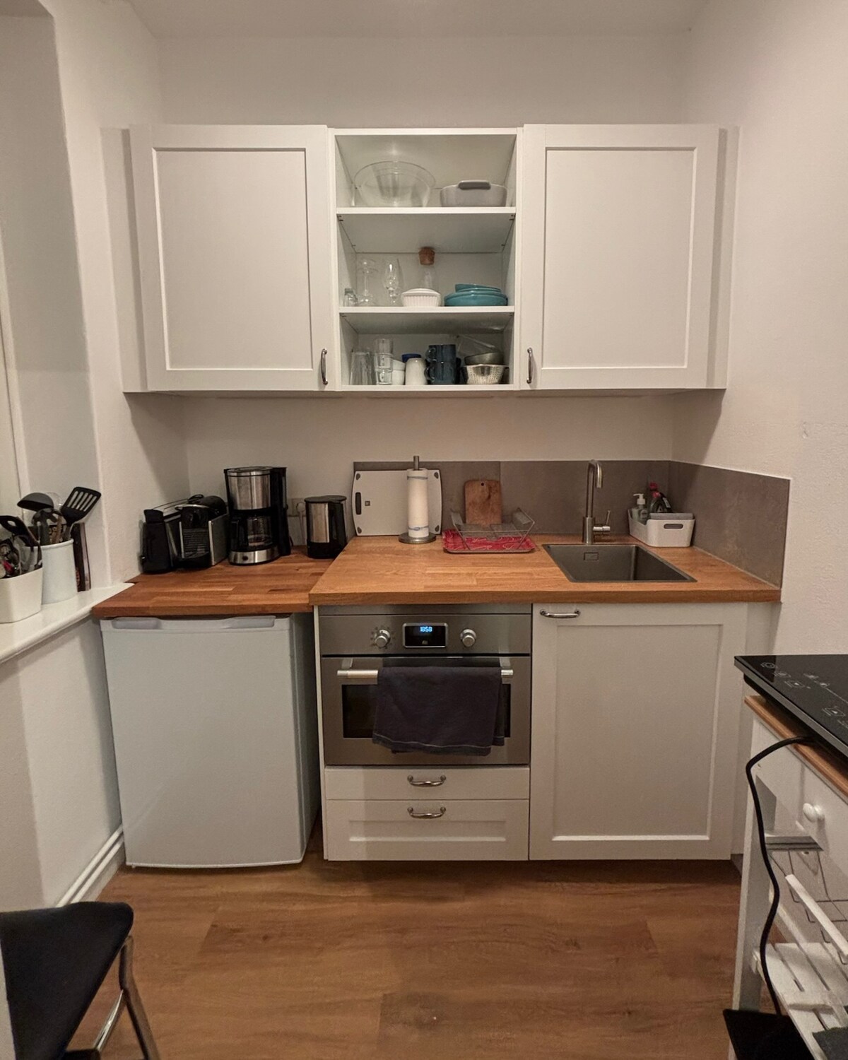The apartment in Hanover is a modern jewel that has been completely renovated and equipped with brand new furniture. The new kitchen has a fridge, freezer, dishwasher and stylish Nespresso coffee machine for the perfect morning coffee. The newly tiled bathroom impresses with a luxurious rainforest shower. The whole apartment is decorated in bright and soothing shades of gray. The location is both quiet and convenient.