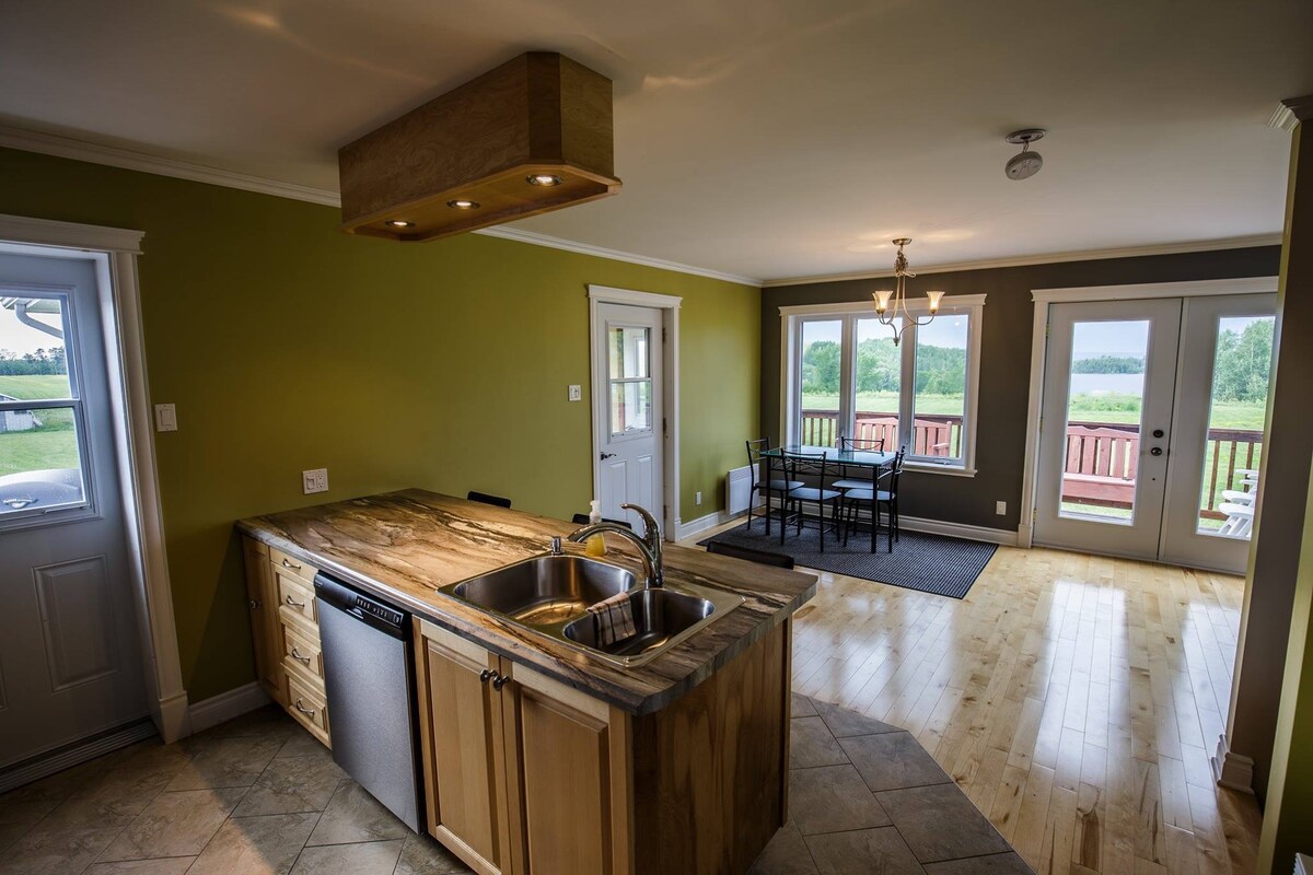 CITQ # 309839 Ayez du plaisir en famille dans ce logement stylisé. Accès direct sur le sentier de motoneige, vtt, piste cyclable, sentier pédestre, de raquette et ski de fond . Vous pourrez vivre le calme et la beauté de la nature tout en étant tout près des services du village situé à 1 km. (Epicerie, fromagerie, poste d’essence, restaurant, dépanneur, quincaillerie, garage automobile).