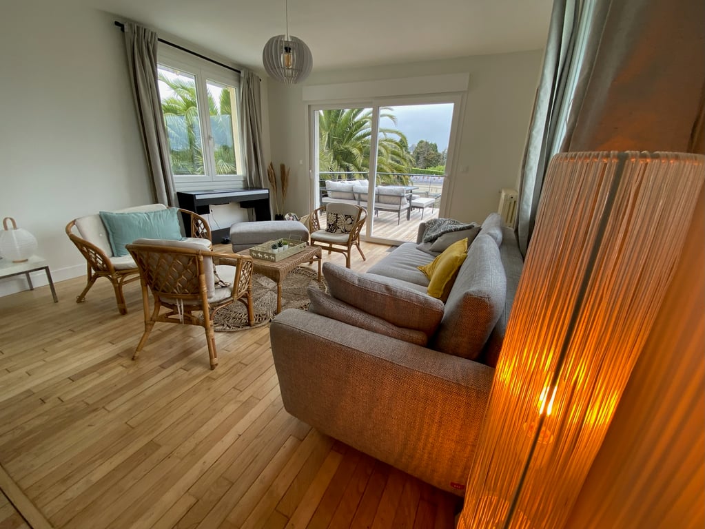 Welcome to our wellness lodge on Plage du Palus in Plouha! In the heart of a natural area, on the dike, this small renovated 40 m2 fisherman's house and its seaside terrace welcome you in an exceptional and peaceful setting! Completely renovated and equipped, this accommodation has a real high-end wellness area: Nordic sauna, shower with bucket of cold water, massage bath... Everything is provided for your comfort. Just come with your swimsuit 😁