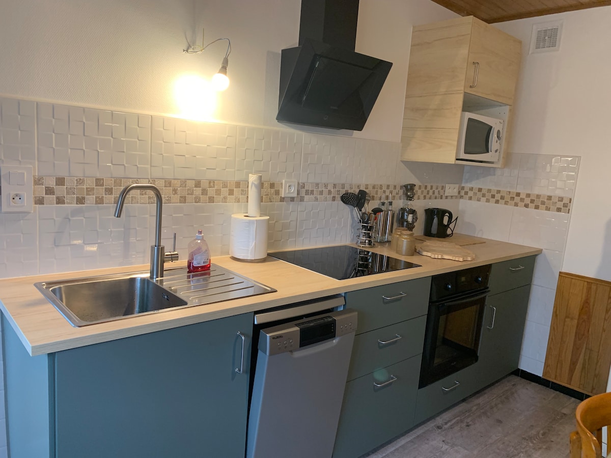"Lovers' Nest" is the ideal place for couples seeking relaxation and zen. This fully renovated 70 m2 house has been furnished and decorated in natural shades and materials by a decor addict. This cozy cocoon is the perfect place to meet as a couple and have a good time together. The +: jacuzzi, massage room, video projector with home theater Beautiful services, tasteful decor and pretty materials such as polished concrete, linen, organic cotton...