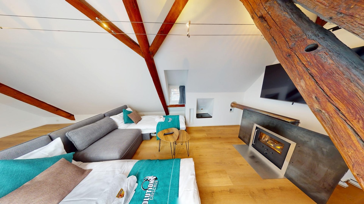 Welcome to Solution-Grischun Apartments 🏛️ Historic old town, central location 🚂 10 minutes from the train station (ideal Bernina Express) 🏠 2-story attic apartment 🔥 Electric fireplace 🛏️ Double bed (160 × 200) 🛋️ 2 sofa beds (90 × 200) 👨🍳 Fully equipped kitchen with ☕ coffee & tea 📺 65" Smart TV 📶 Wifi 🖥️ Laptop workplace 2-in-1 🧺 washer/dryer 👶 Crib & chair available for booking 📆 Flexible check-in/check-out Nearby 🅿️ parking options 🛎️ 24/7 messenger service 🎫 Chur guest card