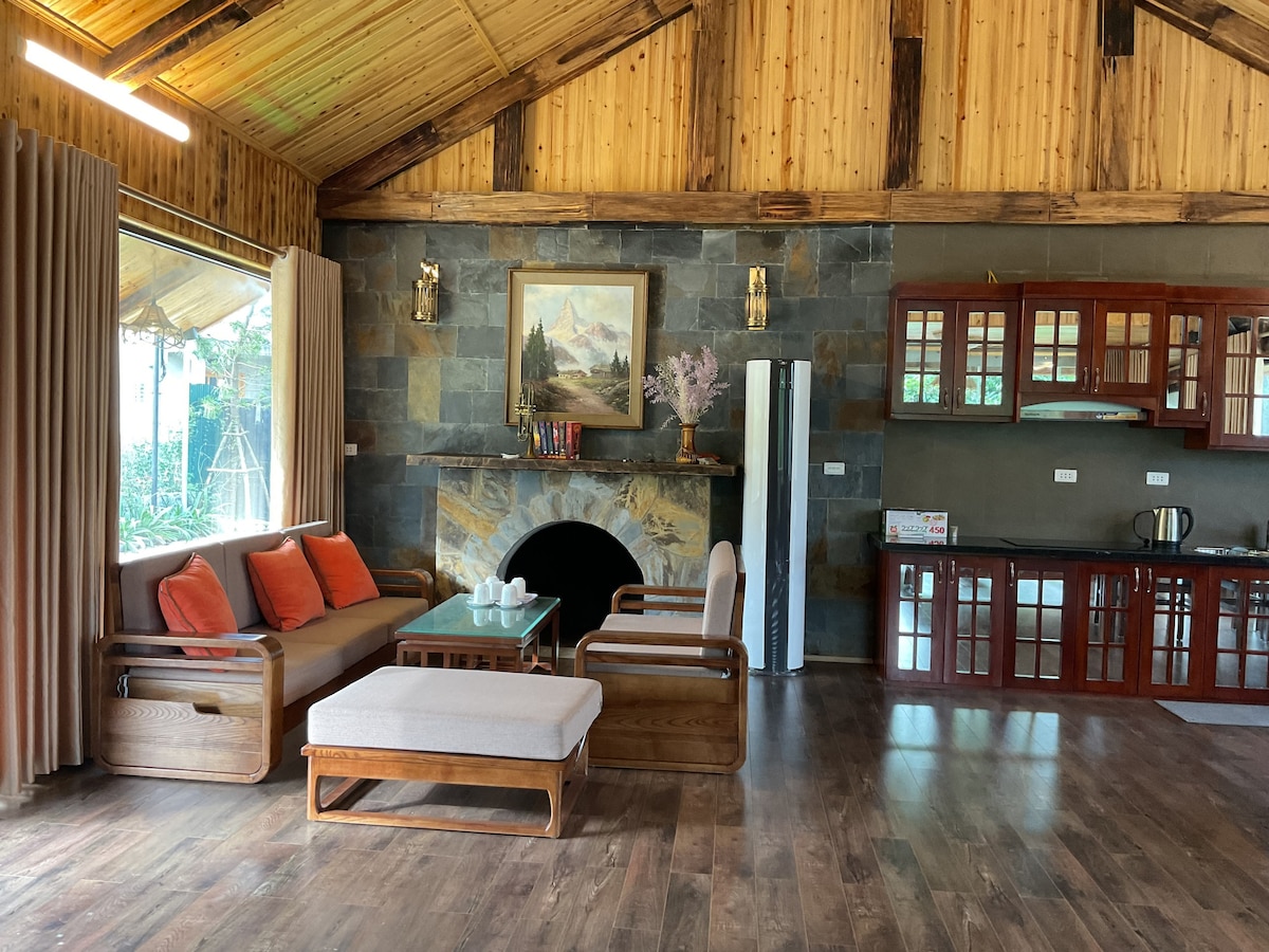 Experience the true spirit of Sapa, just 10km from the town center — peaceful and surrounded by mountains. * Separate wooden chalet for up to 3 guests * Large glass windows with mountain & rice terrace views * Fully equipped kitchen (fridge & cooking utensils) * Fireplace, heater & heated mattress (cozy in winter) * Spacious modern bathroom with hot water & heating * Outdoor garden with panoramic views