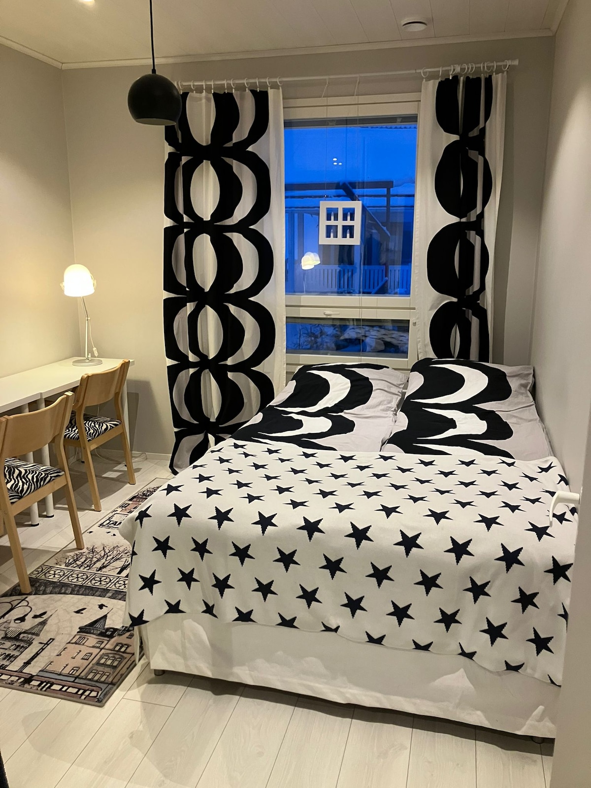 In the center of Seinäjoki, in the immediate vicinity of summer events, but quiet, just completely renovated stylish two-room apartment. A short walk to everywhere... *Downtown 900m * 800m to the Arena *Oma SP Stadium 1.6km. *Railway station 1.2 km *City Theater 300m *Ideapark 3.1 km. *Joupiska Ski Resort 2km The apartment has a bedroom, a large double bed. Extra bed only by separate arrangement. Everything necessary for two people (+2) Kitchen seating for four Dishwasher. Parking space.