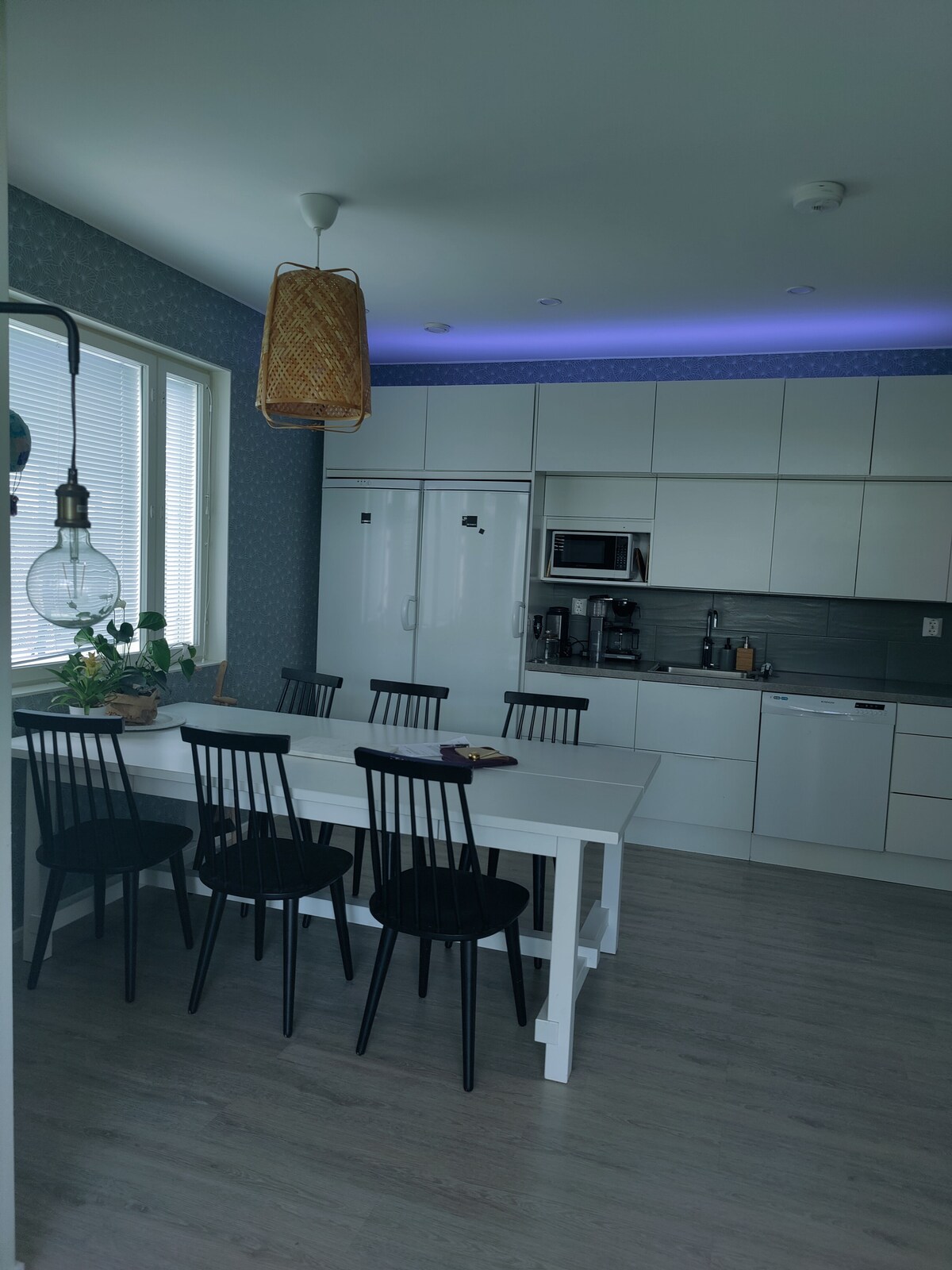 Enjoy this well equipped row house near Skinnarila university campus. You'll also have easy access to nature, including nearby forests and Lake Saimaa. Features: Bedroom Living room Bathroom Kitchen Private sauna Patio 50" 4k Smart-TV Free private parking Wi-Fi Ideal for two people but can accommodate up to four adults. Enjoy the convenience of keyless self-service check-in.