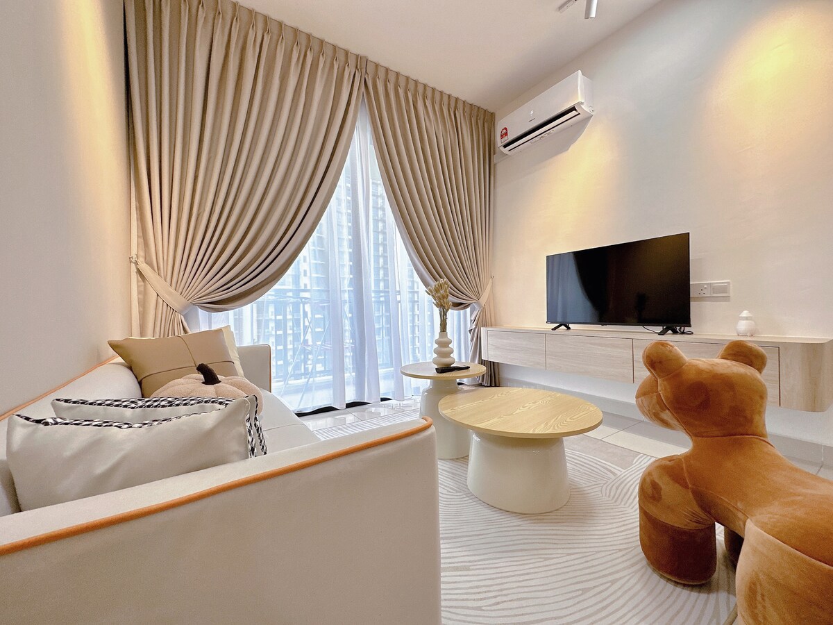 (1+1 BR & 1 bathroom) Contemporary modern and cozy condo in the heart of JB city centre. Suitable for 4pax family, friends and business group. **5mins to CIQ, City Square, KSL, Pelangi, and Larkin **8mins to Mid Valley Southkey, Larkin Sentral and Sentosa **15 mins drive to Paradigm mall, Sutera, Skudai and Mount Austin ✔ 4K SmartTV ✔ High Speed Wi-Fi, working tables with extension plug ✔ Washer ✔ Airconds in every rooms. ✔ Atari console, Mahjong, and Board games. ✔ FREE parking for 1 car