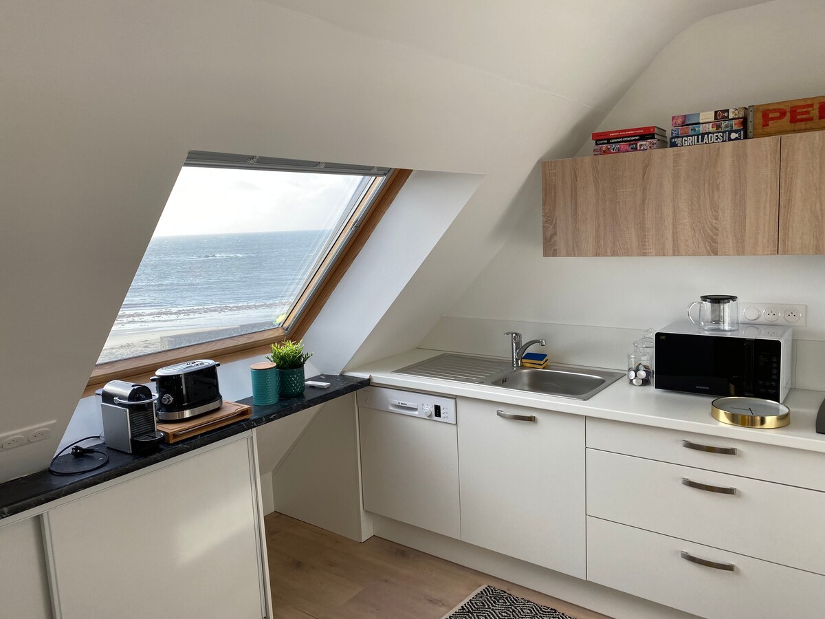Cocooning apartment opposite the beach