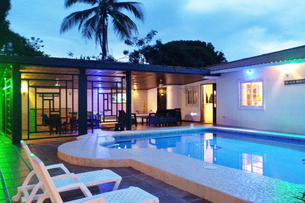 This cozy residence is a private property, located 10 minutes by car from the beaches, has 5 bedrooms, 4 with air conditioning, 3 bathrooms, pool table, high speed WIFI, 4 cable TVs, fully equipped kitchen, 3 ranches for entertainment, freezer, barbecue, swimming pool. Our house is ideal for sharing with friends, family, and celebrations in general, as long as you notify the host that you have a party or event in advance.