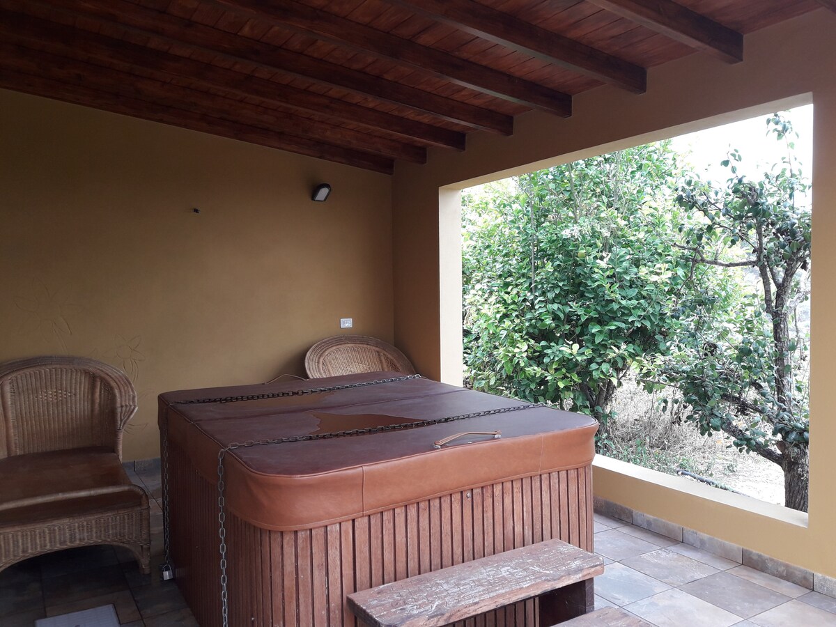 Hobbit style cave house, in the midlands of Gran Canaria, at the end of a secluded rural road. 70 m2. It has a simple and comfortable decoration, counting all its rooms with large windows. It has a bedroom with two beds (possible folding and baby crib), kitchen, bathroom with shower, and living room with sofa, TV, stereo and acoustic piano. Outside you have a garden-terrace, barbecue, breakfast table and sun beds for sunbathing, or to enjoy the views of the mountains and yhe sea. Own parking.