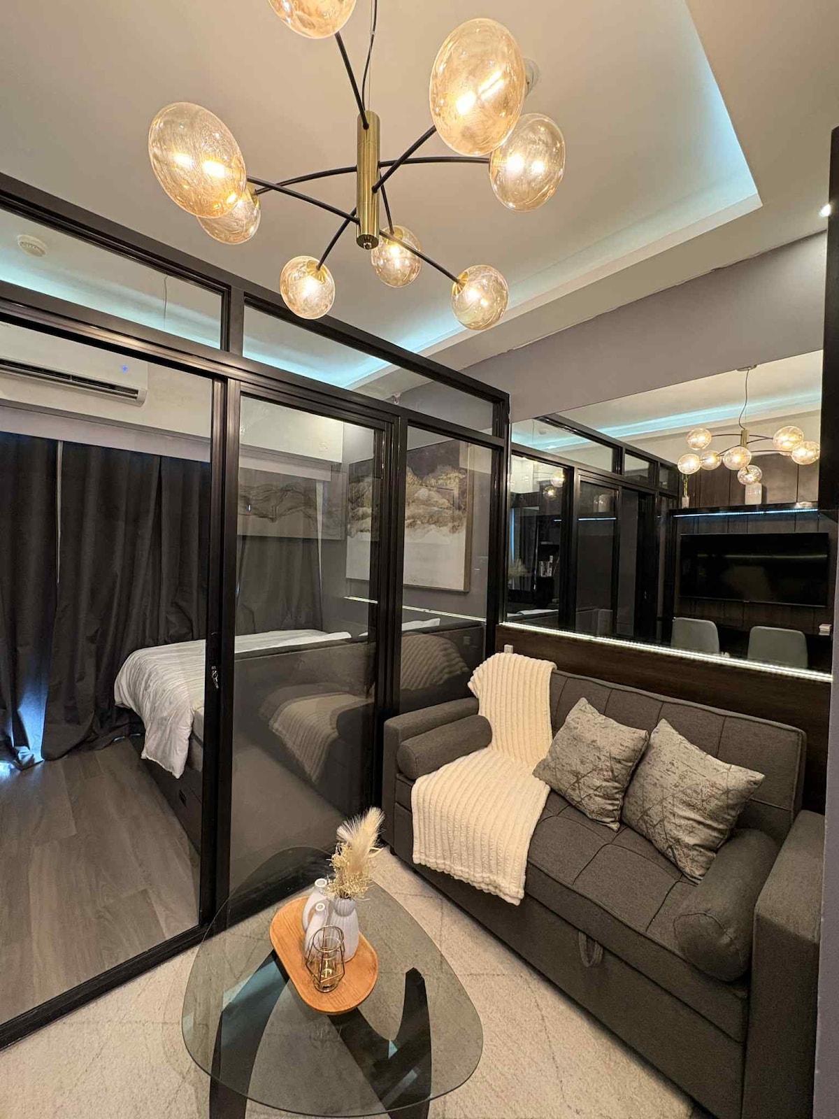 Welcome to this minimalist, quiet but comfy 1-bedroom unit here at South Residences, your home away from home. Self-check in is made possible by a smart digital lock. Smart TV with 5G internet is available for your viewing pleasure. The sofa in the living room pulls out into a double-sized bed, should you want to take a nap . For a more restful sleep, the bedroom has a queen-sized bed with memory foam mattress . Amenities outside the unit include: pools, gazebos and of course, a shopping mall.