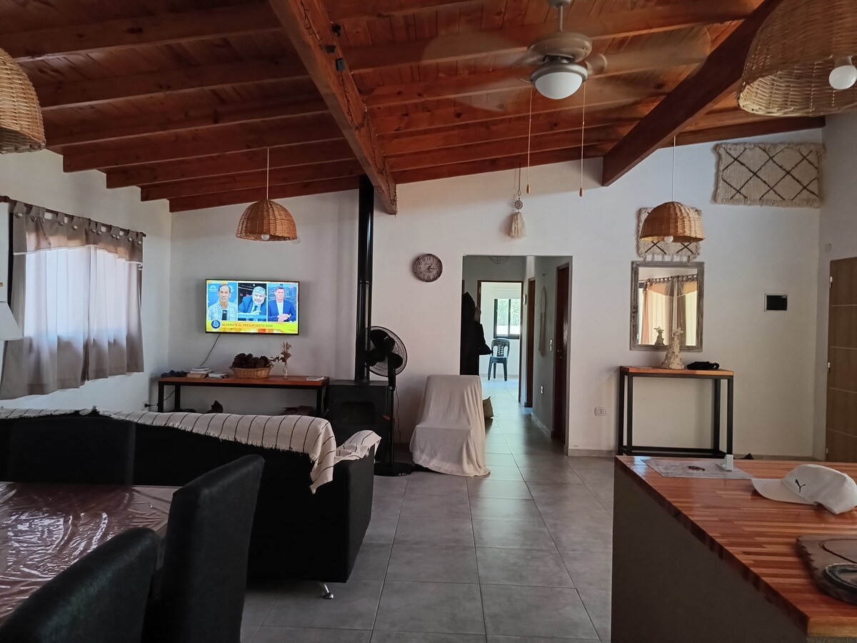 Amplia casa con quincho y parrilla, con tres dormitorios, dos baños y living comedor con cocina integrada con salida al quincho. Dos habitaciones principales ambas con cama matrimonial y una habitación mas pequeña con dos camas de una plaza. Parque al frente. A 1000 metros del mar.