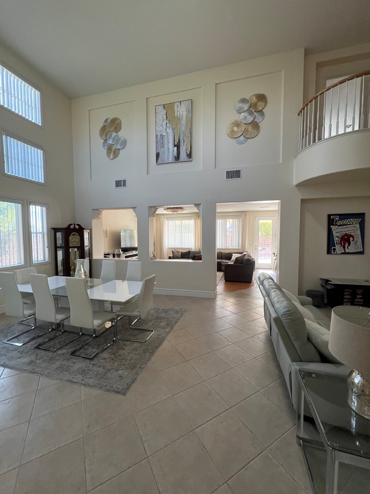 Our house is perfect for families, business or similar groups (NO PARTIES, GATHERINGS OR EVENTS, NO PET NO EXCEPTION! Please ASK before book if you are local, invite additional guests or bring service pet) Located 5 min drive away from the Airport & Raiders Stadium, 10 min to the strip, situated in a very quiet neighborhood near Las Vegas' best premium outlet. Read our reviews! Featuring 1000 sq2, 6 holes putting green in backyard. 2600sq2 house has 2 living, 1 game room & dining space.