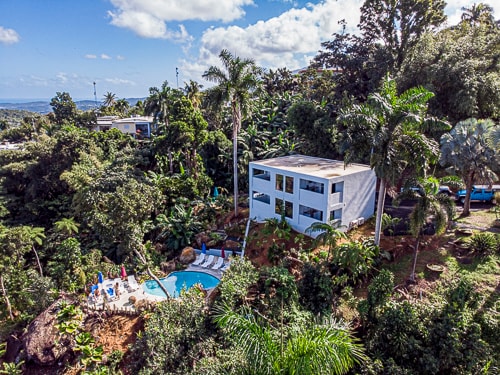 Perched high (1,225 feet above sea level) on 5 acres in the Sierra de Luquillo Mountain Range within the Caribbean National Rain Forest of Puerto Rico, El Escondido offers four unique Studio rentals for 2-night minimum stays among a 2 acre private collection of tropical gardens with year-round swimming pool. Each 325 sq ft studio has its own entrance within one modern newly constructed building. The hosts live in an adjacent home and are here to help make your entire vacation a memorable one.