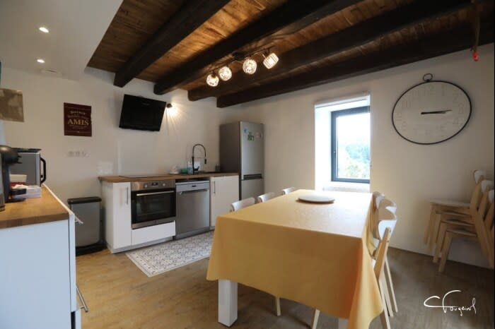 Discover En Haut du Paradis, a contemporary 94 m² setting bathed in light ☀️, ideally located in Sadroc, in the heart of Corrèze. With two king size bedrooms🛏️, a fully equipped kitchen, and a private 5-seater hot tub with spectacular views, this is the perfect place to recharge your batteries in complete privacy. Enjoy high-end comfort: air conditioning❄️, custom-designed furniture, an elegant bathroom and a stone wall that adds charm and character.