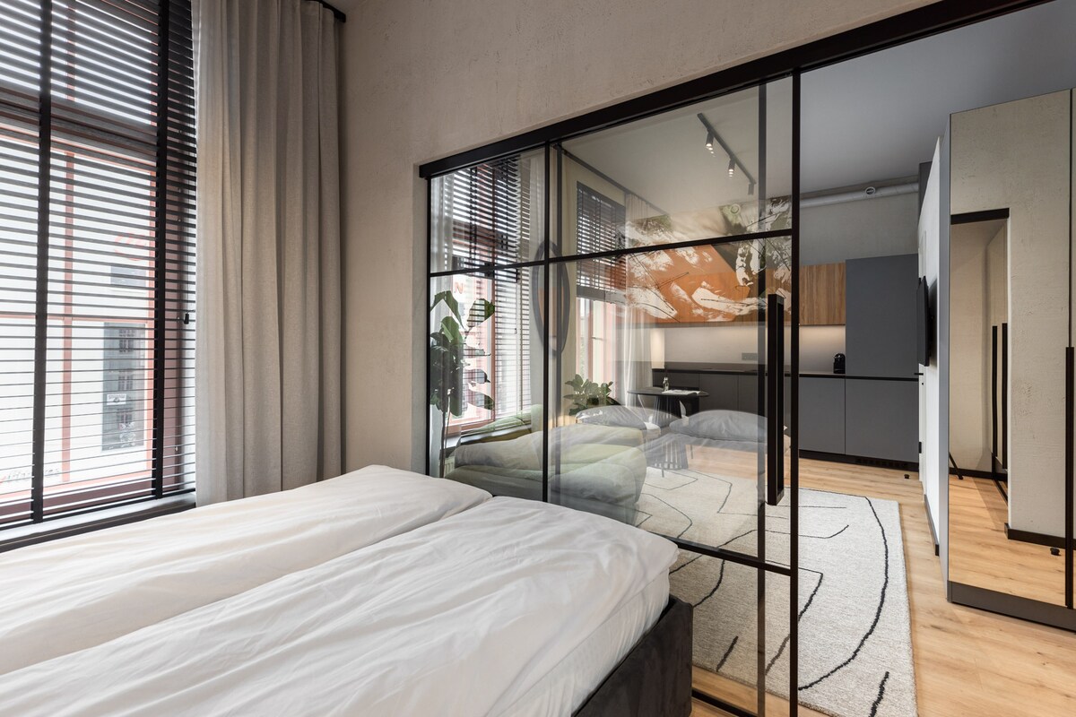 Hallo Loft: Chic Urban Apt with Glass Bedroom