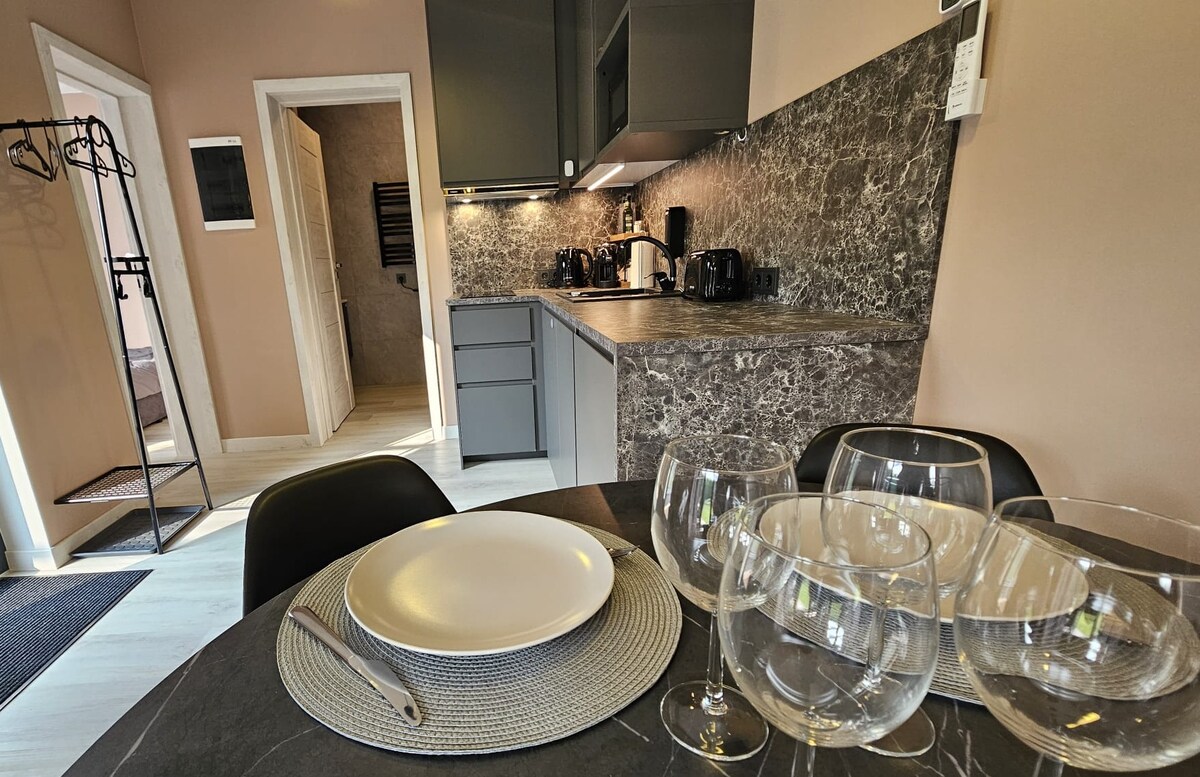 Welcome to sauna apartment. Newly renovated studio type apartment with large shower and sauna. Perfect place for a couple to stay and travel around Kurzeme, but also near all the amenities in town. Located near Talsi center, shops and in walking distance to all places to see in town. On site free parking. Our apartment is perfect for a couple, but with a possibility to add a crib for a baby or small toddler. Apartment has an outdoor space with table for morning coffee or cold bear after sauna.