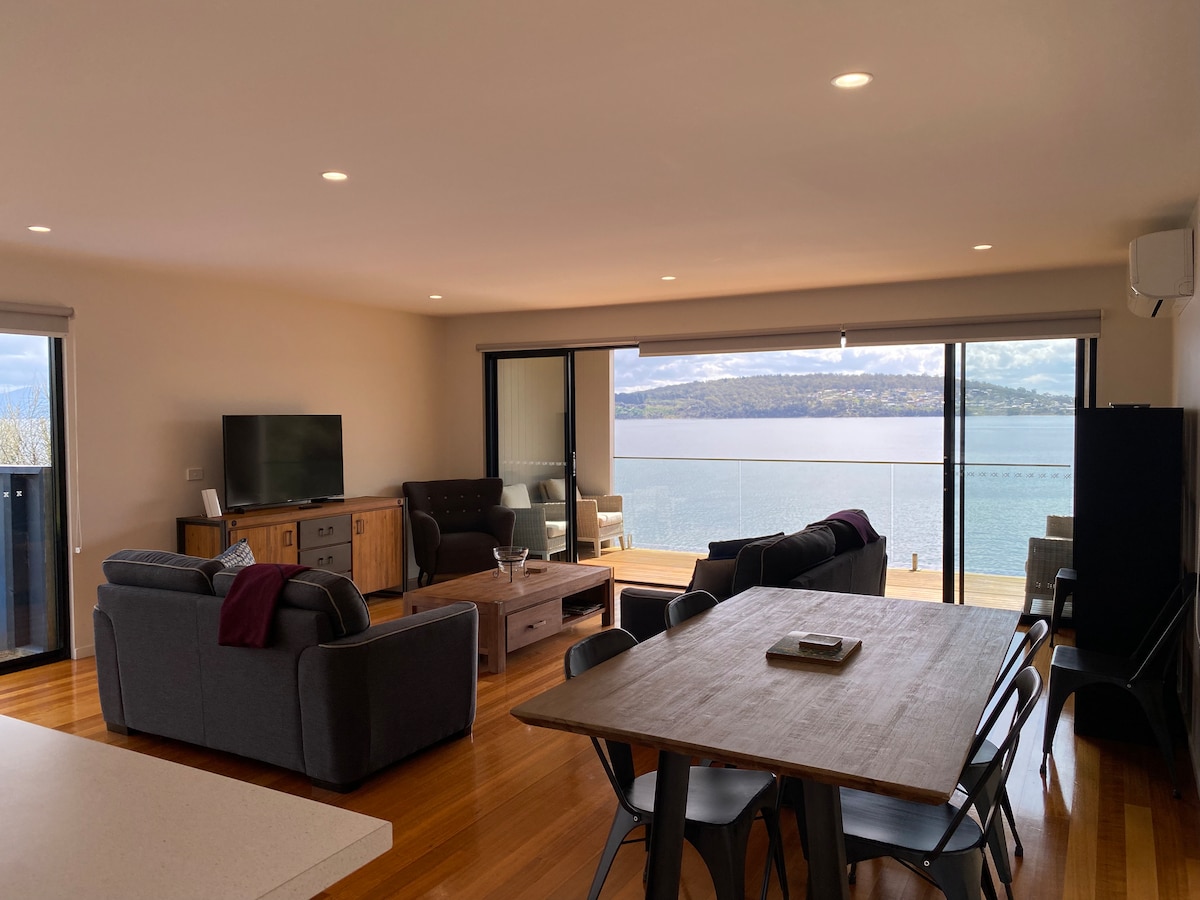 Luxury, complete privacy & absolute waterfront is yours. Here you will experience uninterrupted views of the estuary while you contemplate the possibilities of fishing, cooking in the gourmet kitchen or taking in the magical water views from the king-sized bed and living areas. We are well located for day trips to the nearby award-winning Coal River wineries, historic Richmond, the Tasman Peninsular, East Coast beaches and more. * See below for helicopter news!