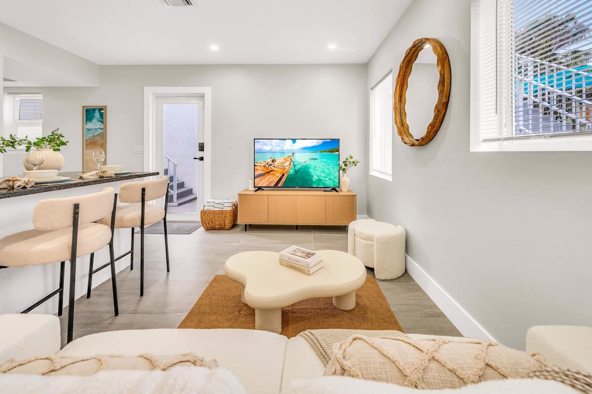 Welcome to your charming poolside paradise! This 1BR/1BA condo is just steps from the famous Lauderdale-by-the-Sea beach. This beach bungalow features a king-size bed, full kitchen, fast Wi-Fi, large smart TV, and a dedicated workspace—perfect for relaxing on the beach or working remotely in a quiet, charming escape. Walk to shops, restaurants, and enjoy the beach at your doorstep. Ideal for couples or solo travelers looking for a peaceful coastal retreat.